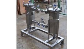雙聯(lián)過濾器采用4個直通閥門或2個三通球閥,將兩個單筒過濾器組裝在一個機(jī)座上,清洗過濾器時不必停車,保證其連續(xù)工作,是不停車生產(chǎn)線過濾裝置首選。